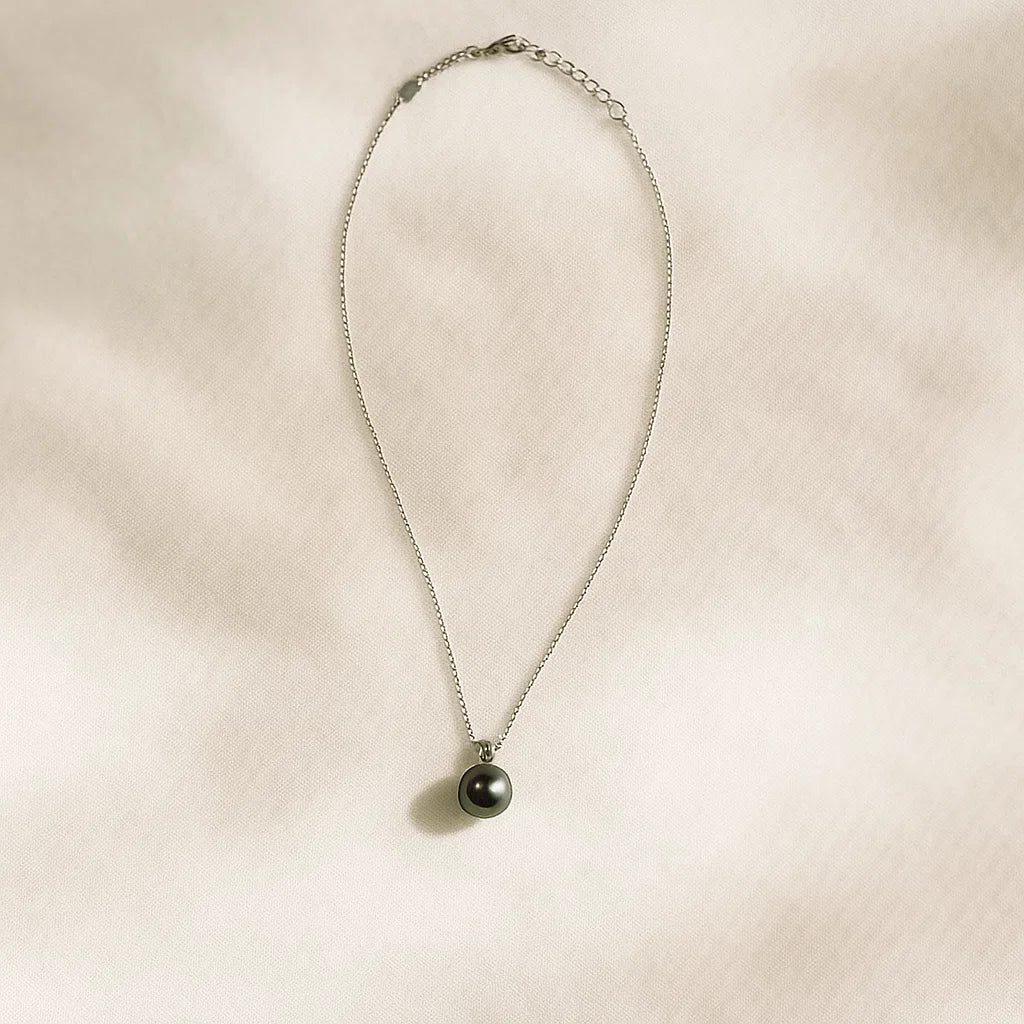 Minimal, mysterious, and mesmerizing — Ather is a rare treasure from the sea. This necklace features a captivating 9–10 mm seawater black pearl, admired for its natural depth and luster. Suspended on a delicate chain, the pearl is paired with a discreet moissanite stone that adds a spark of brilliance and contrast, elevating its bold simplicity.