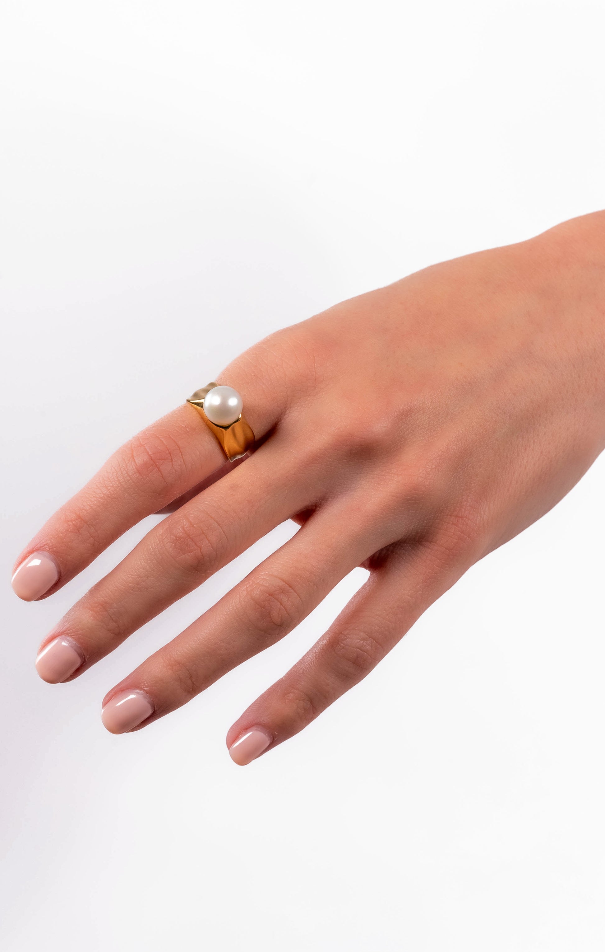 Bold Curve is not your average ring. With its fluid shape and standout pearl, it’s made to disrupt the ordinary.
