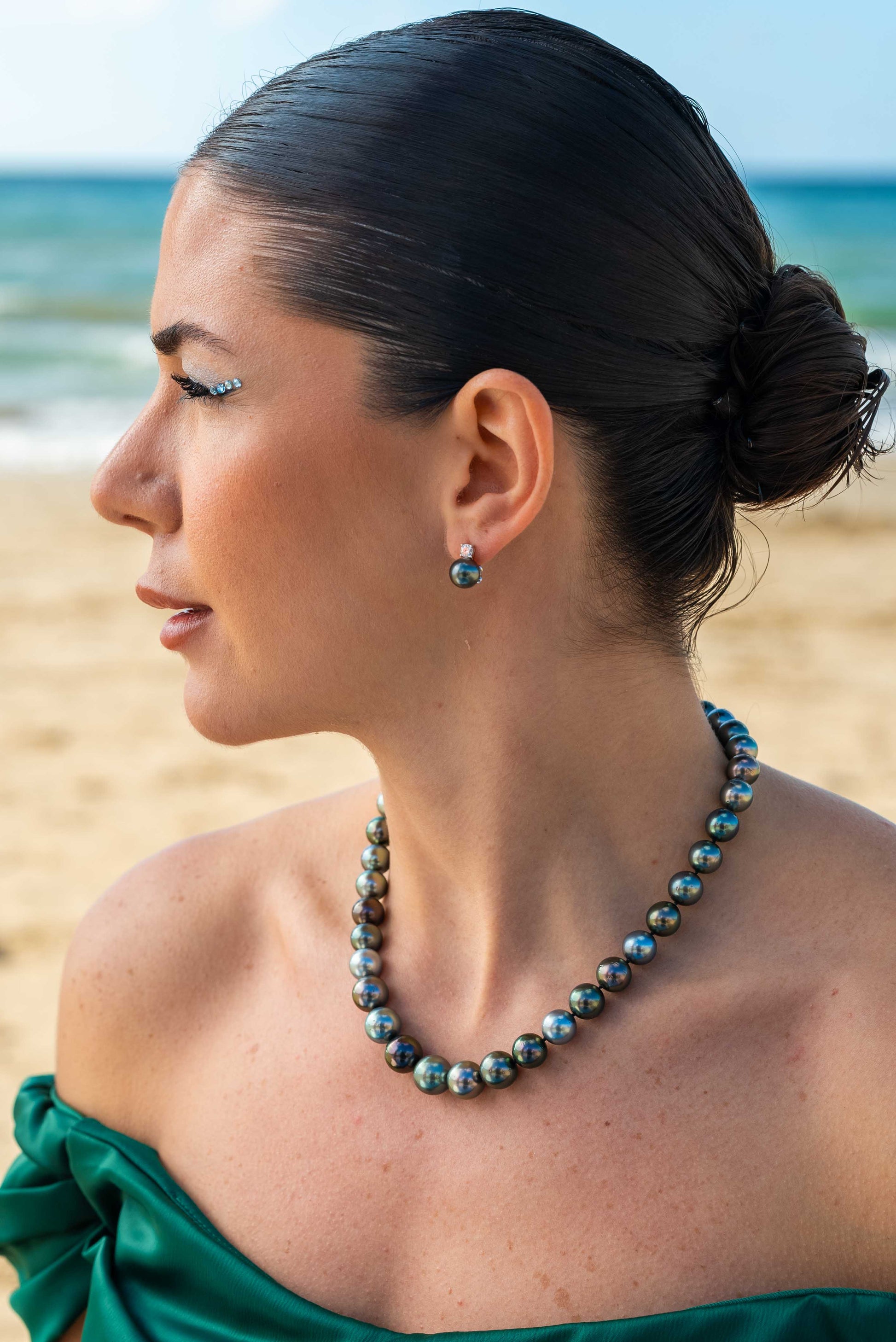 With origins in the warm lagoons of French Polynesia, this strand of naturally black Tahitian pearls speaks of timeless beauty passed from one generation to the next. Each pearl, with its unique luster and deep hues of midnight, silver, and peacock green, is a tribute to centuries of adornment, ritual, and heritage.