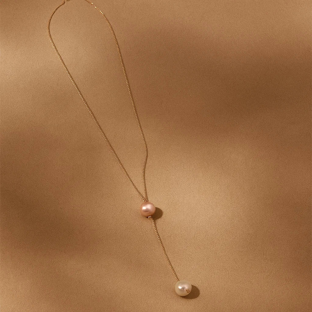 Delicate as a petal, fluid as the tide — Sea Rose is a handcrafted necklace that captures the poetry of a seaside sunset and the softness of a summer breeze. A pink freshwater pearl rests near the collarbone, giving way to a graceful drop baroque pearl suspended from a fine 18K gold chain.
