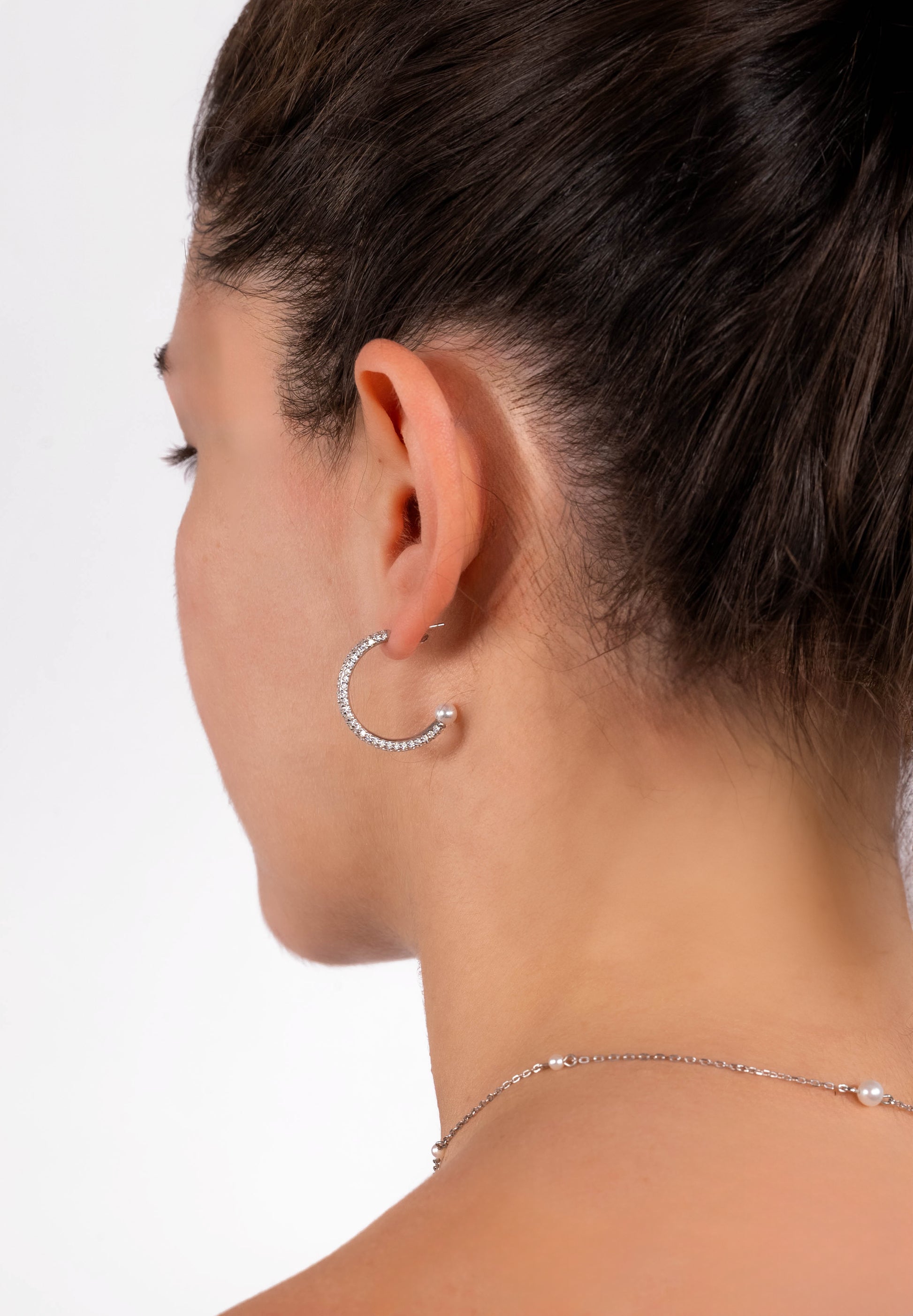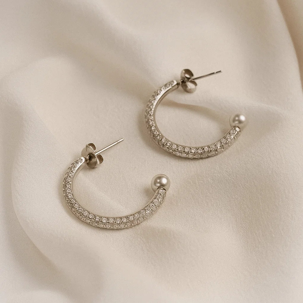 Inspired by the quiet brilliance of starlight, Solea earrings are where sparkle meets surprise. Hand-set with radiant moissanite stones that shimmer like constellations, each crescent-shaped hoop ends with a perfectly round pearl — a twist of softness that redefines the silhouette.
