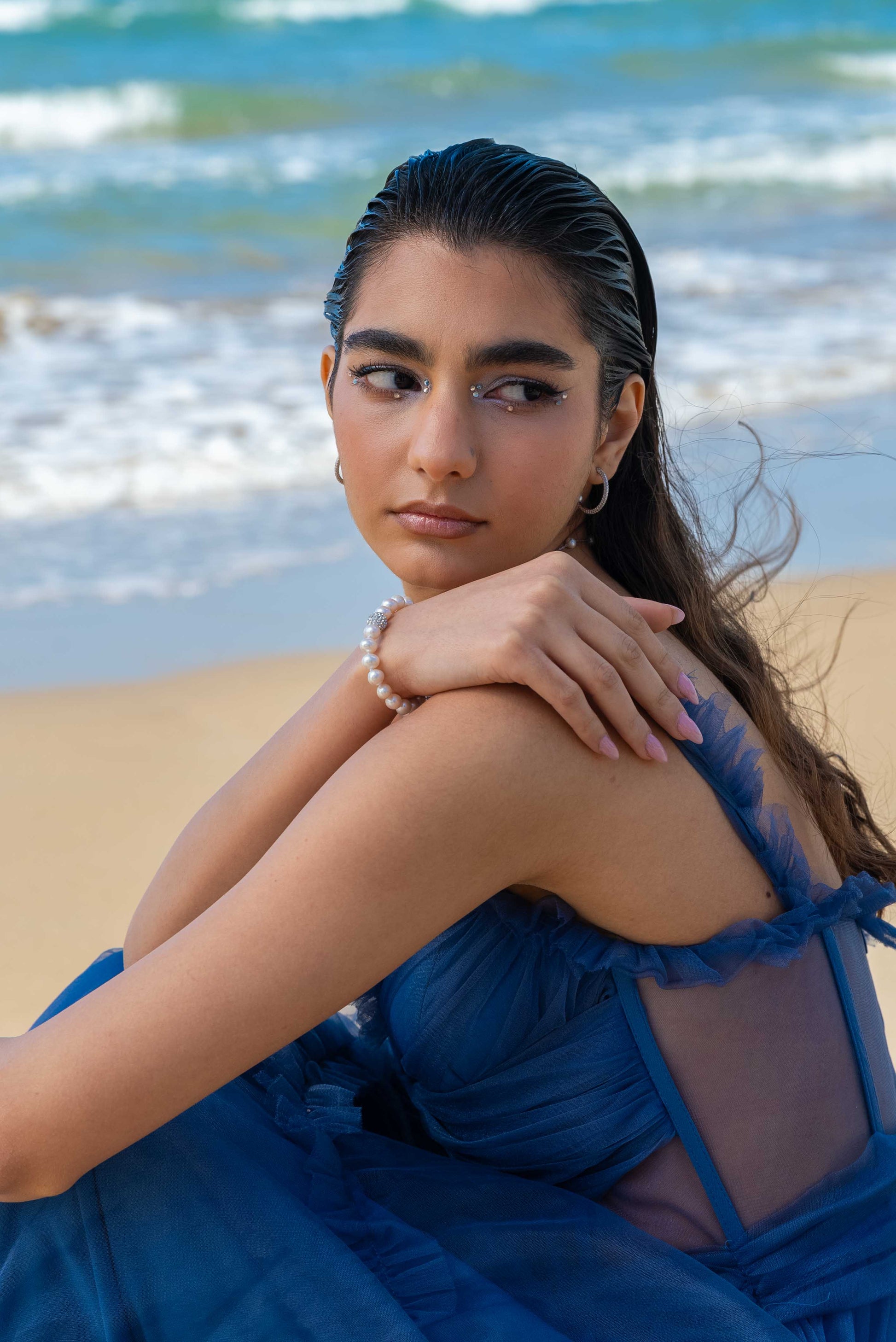 A celebration of continuity, The Heirloom Set brings together three elegant expressions of pearl beauty. The centerpiece — a strand of luminous 5A-grade freshwater pearls — is adorned with a pavé-set sterling silver ball, radiating brilliance through DVVS moissanite stones. It's paired with a coordinating bracelet and a second, minimalist pearl stud earrings. This trio is designed for timeless versatility — to be worn layered or styled individually, carrying stories across generations.
